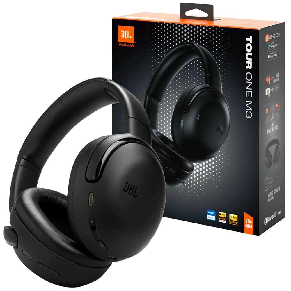 Los JBL Tour One M3 originales son auriculares over-ear premium con cancelación activa de ruido, sonido JBL Pro y funciones avanzadas — nada que tenga una réplica barata “Tour One M3” tipo earbuds pueda igualar: